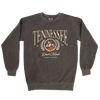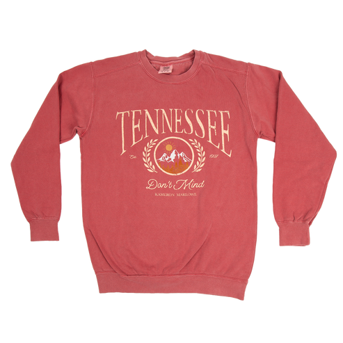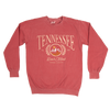 80% ringspun US cotton / 20% polyester garment-dyed crewneck sweater in crimson and grey